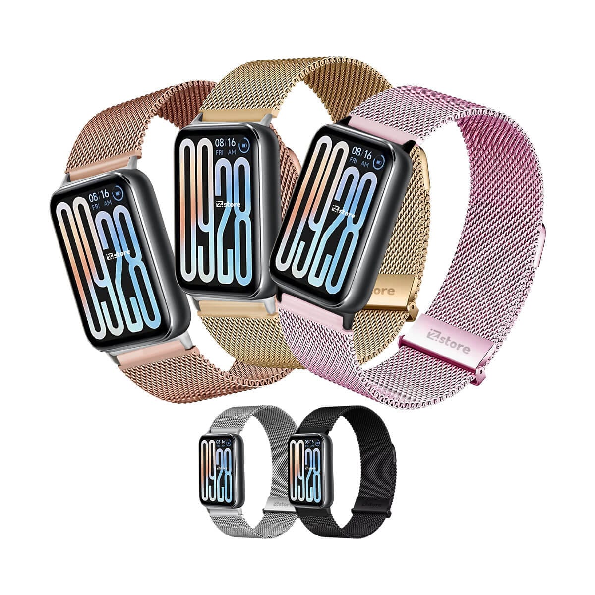- Diseño Elegante: Malla milanesa de acero inoxidable que aporta un toque premium a tu smartwatch.