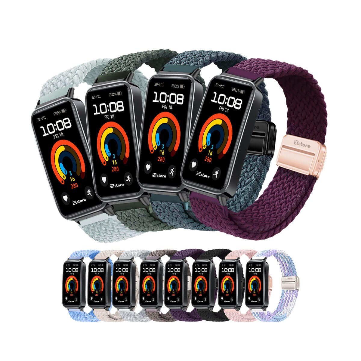 Además, con 12 colores modernos y versátiles para elegir, podrás personalizar tu smartband para que coincida con tu estado de ánimo, tu atuendo o tu actividad. Desde tonos neutros y elegantes hasta colores vibrantes y llamativos, hay una opción perfecta para cada ocasión.